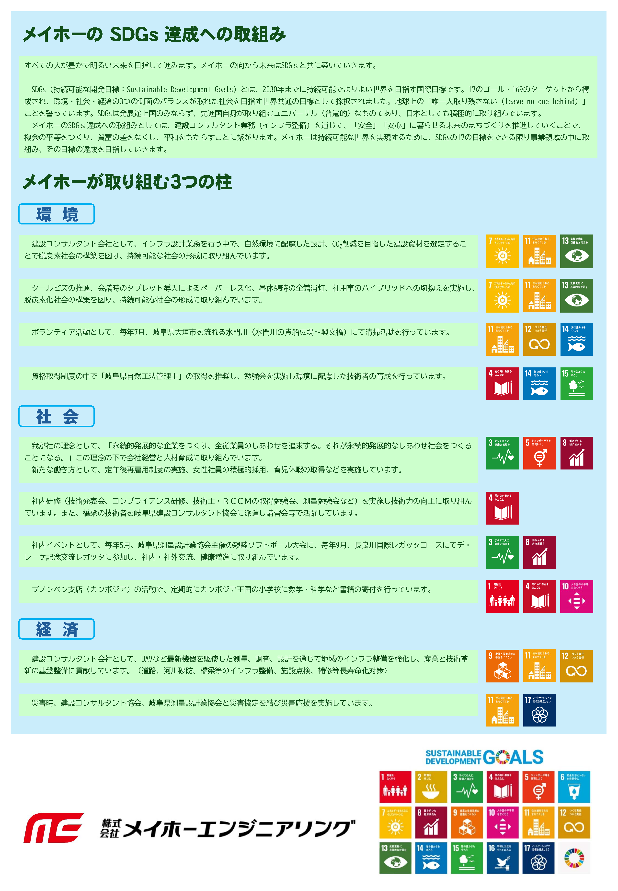 メイホーは持続可能な世界を実現するために、SDGsの17の目標をできる限り事業領域の中に取組み、その目標の達成を目指していきます。地域社会と共生しながら、地球環境に配慮した事業を展開しています。