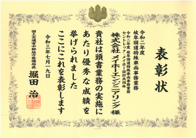 当社で受注した『令和3年度 多治見砂防測量業務』の優良業務表彰を受けました。