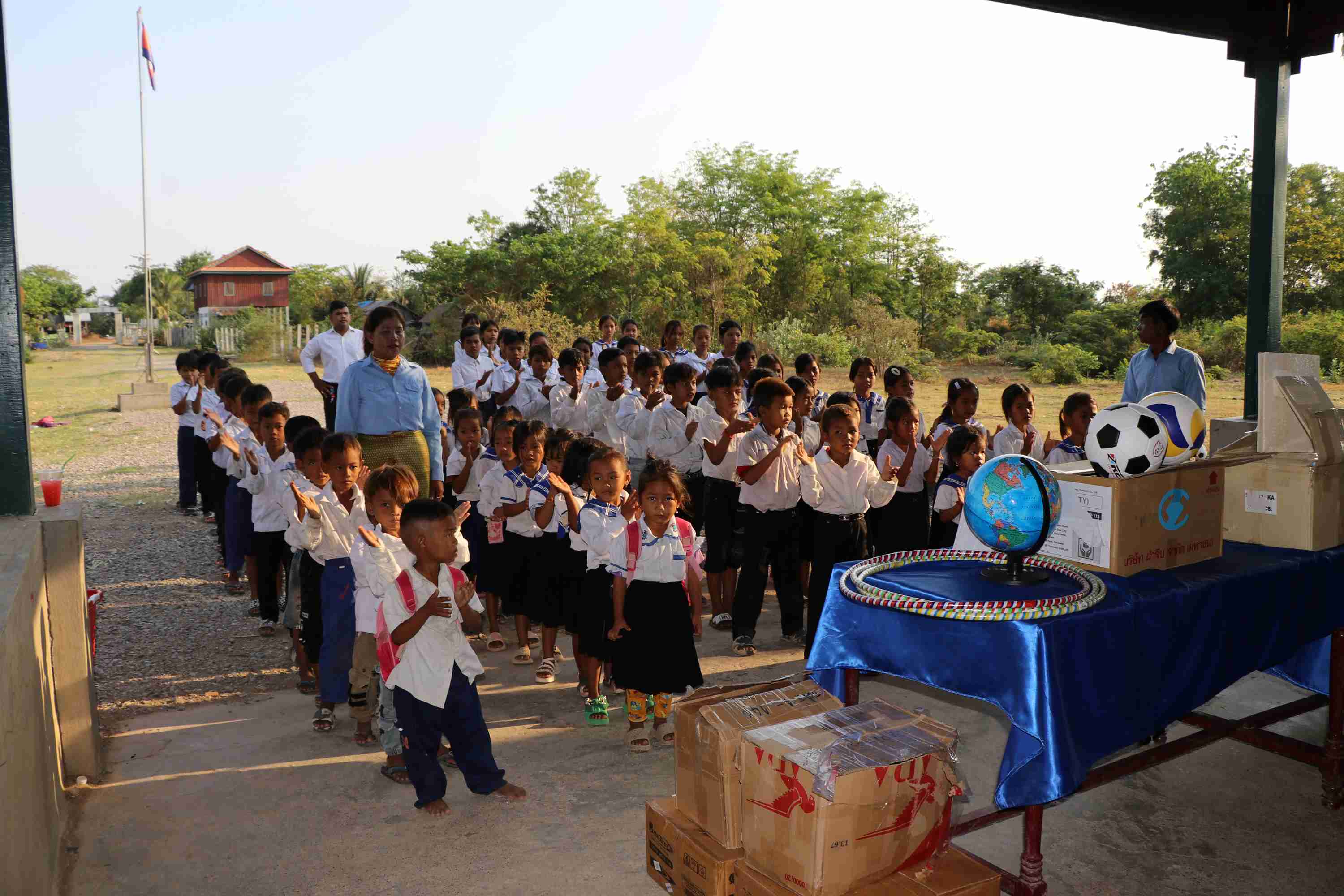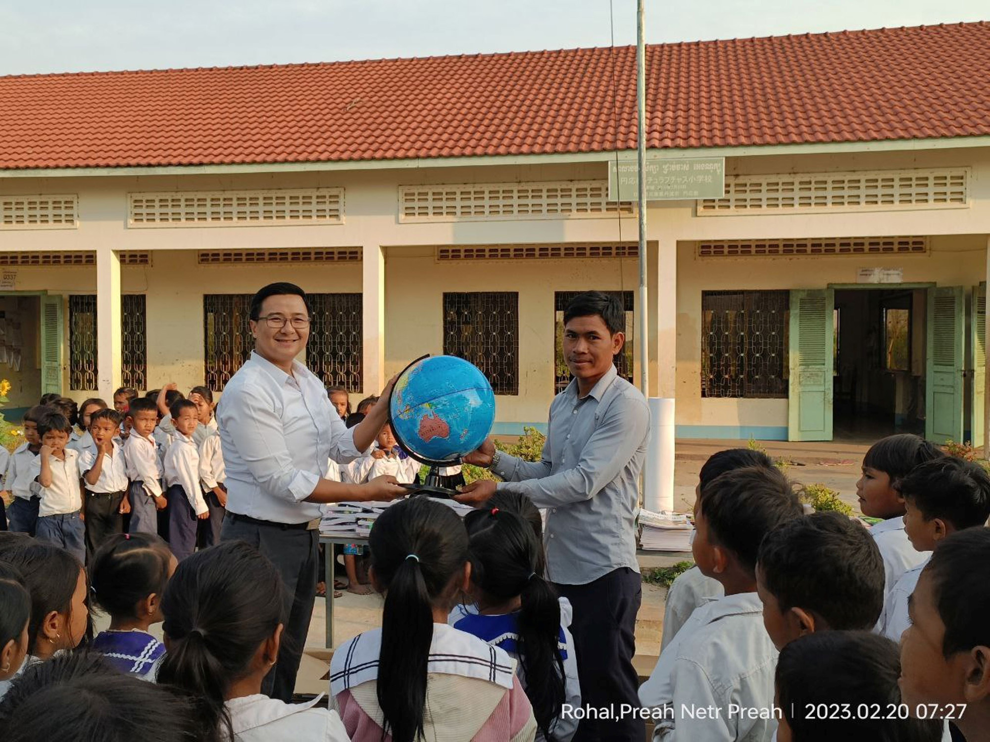 4月にカンボジア王国バンテアイミンチェイ州オウチョブトメイ小学校(総生徒数:169名、教師:6名)に数学・科学を中心とした書籍の寄贈をしました。 当社プノンペン支店(カンボジア)のソジアート支店長が小学校を訪問し、子供たちへ本を届けました。