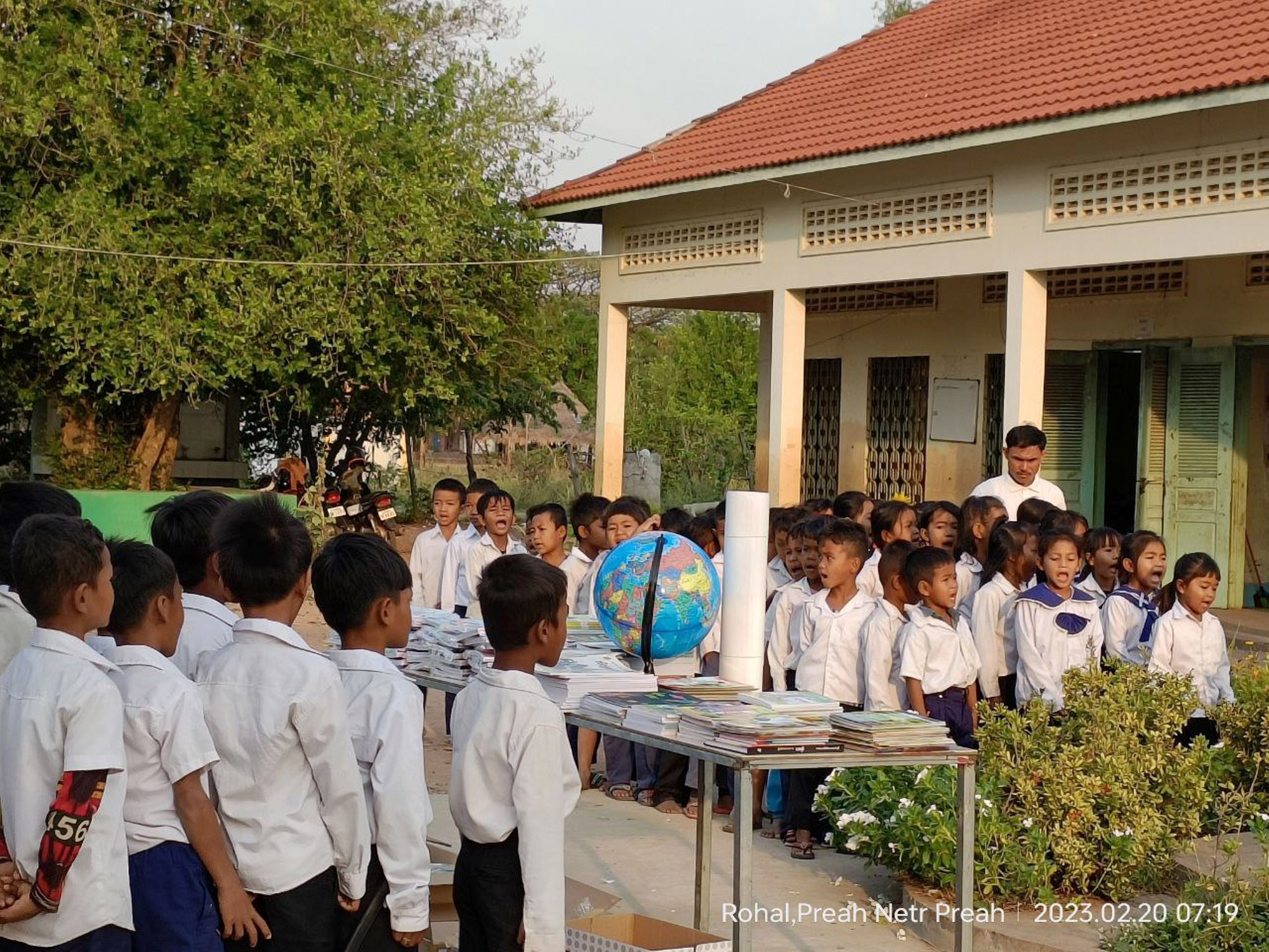 2月にカンボジア王国バンテアイミンチェイ州チュロアップチャス・エンノキョウ小学校(総生徒数180名、教師5名)に数学・科学を中心とした書籍の寄贈をしました。