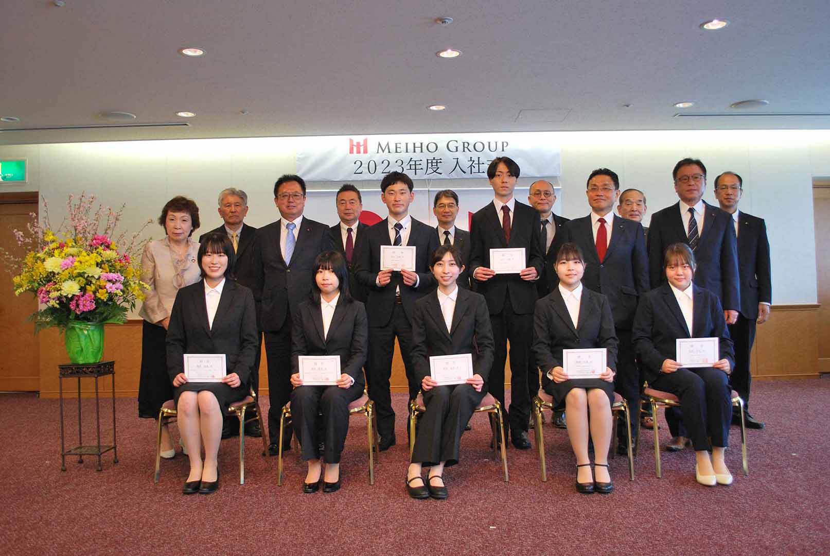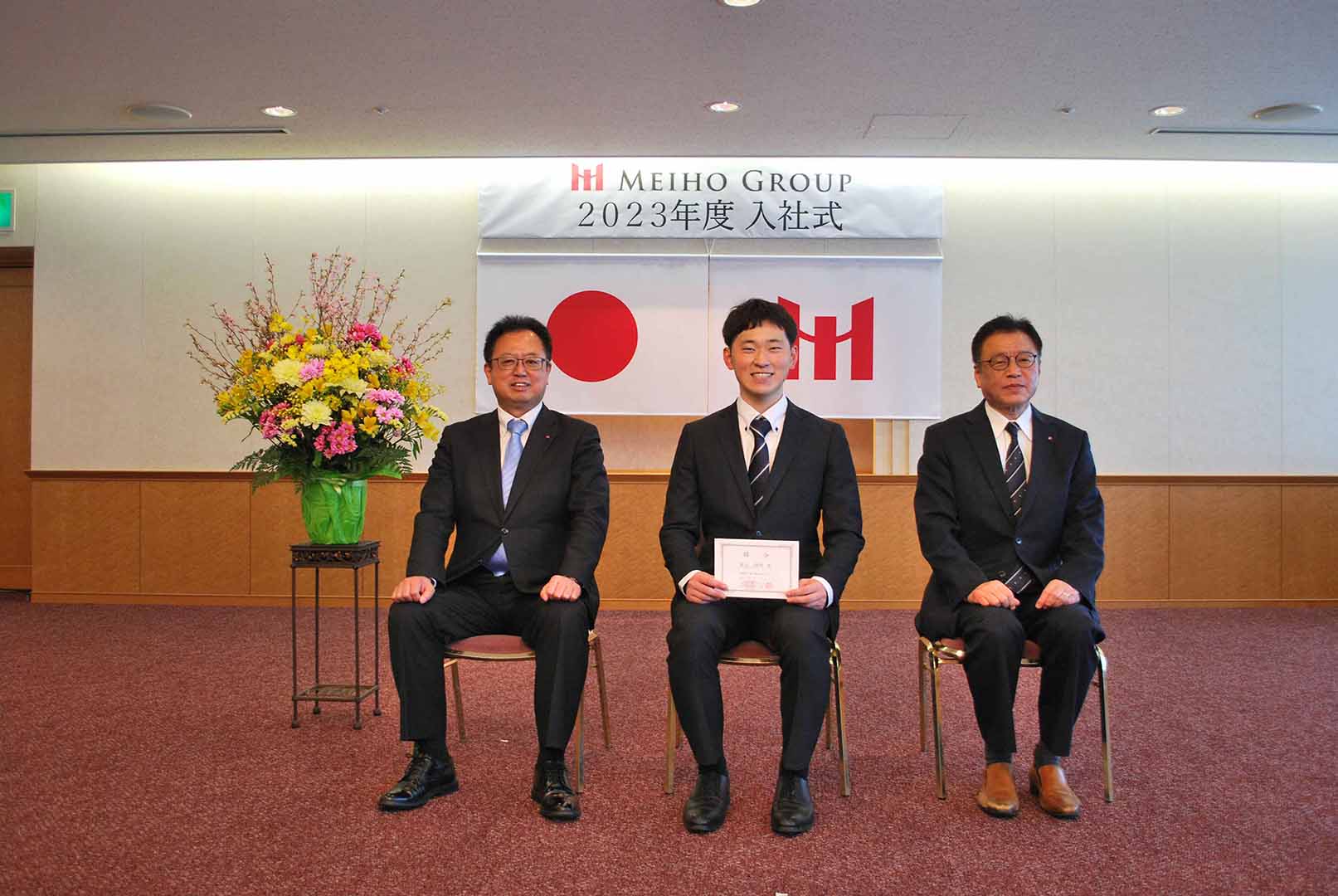 OKBふれあい会館にて、メイホーグループ2023年度入社式を行いました。