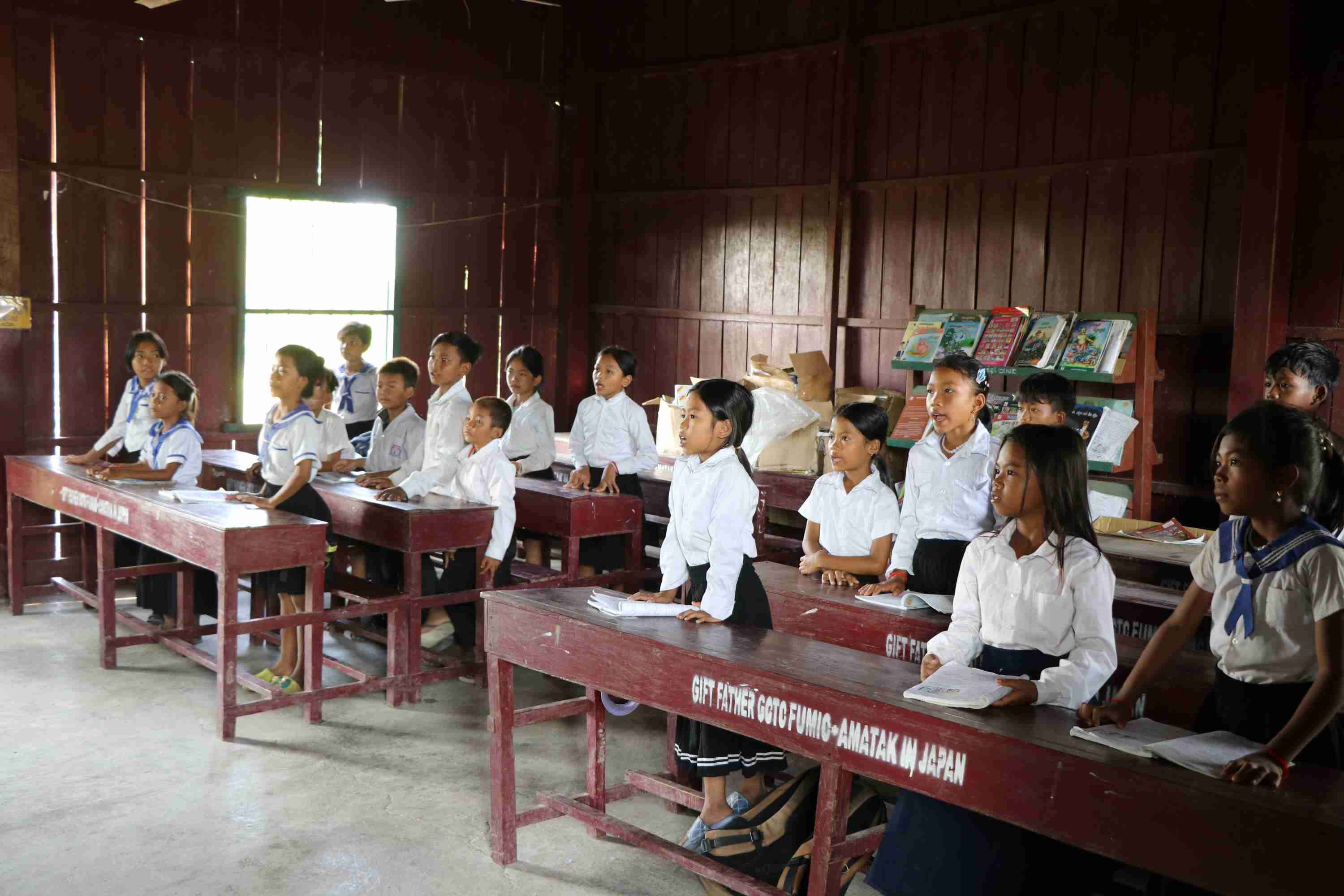 当社プノンペン支店(カンボジア)のセイラロアット相談役が小学校を訪問し、子供たちへ本を届けました。